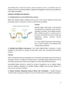 The media ecosystem reinforces this gap through framing. Coverage often spotlights individual perseverance—voters overcoming obstacles—rather than interrogating institutional accountability, particularly the responsibilities of electoral bodies. This charity-based narrative subtly shifts blame away from systemic design failures and toward personal struggle. The brief’s most strategic shift is conceptual: accessibility failures should be classified as electoral irregularities, not welfare concerns. It calls for standardized disability observation modules, co-designed methodologies with Organizations of Persons with Disabilities, integration of accessibility into headline credibility findings, long-term funding across the full electoral cycle, and rights-based, data-driven reporting. The ultimate impact is transformative: moving disability inclusion from visibility to credibility—where elections are judged not simply by turnout or calm, but by whether all citizens can participate on equal terms.